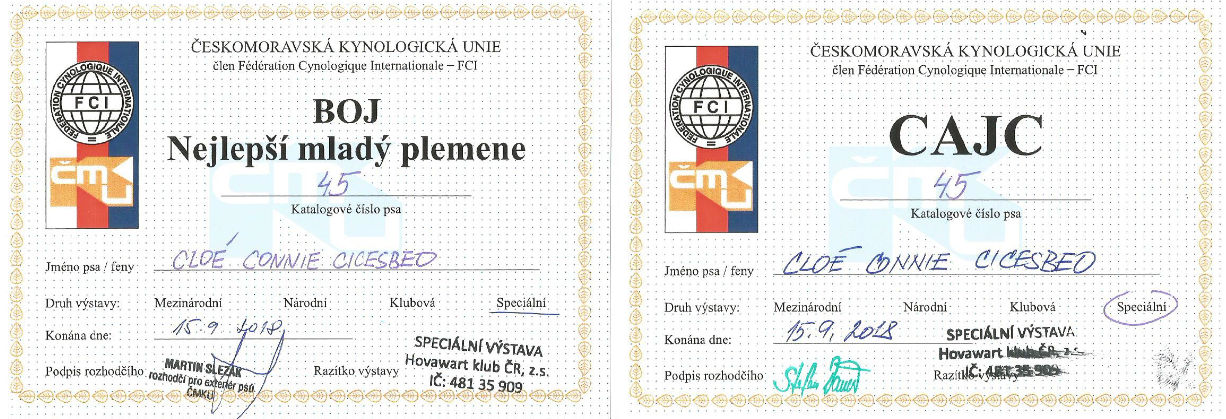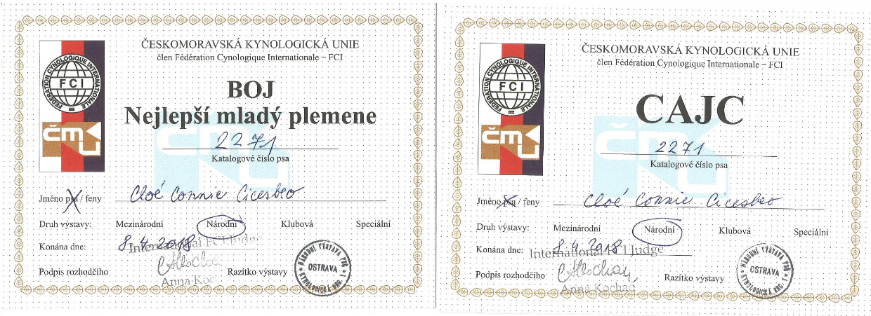 2. 9. 2018 - Národní výstava Floracanis Olomouc - třída mladých: V1, CAJC, BOJ